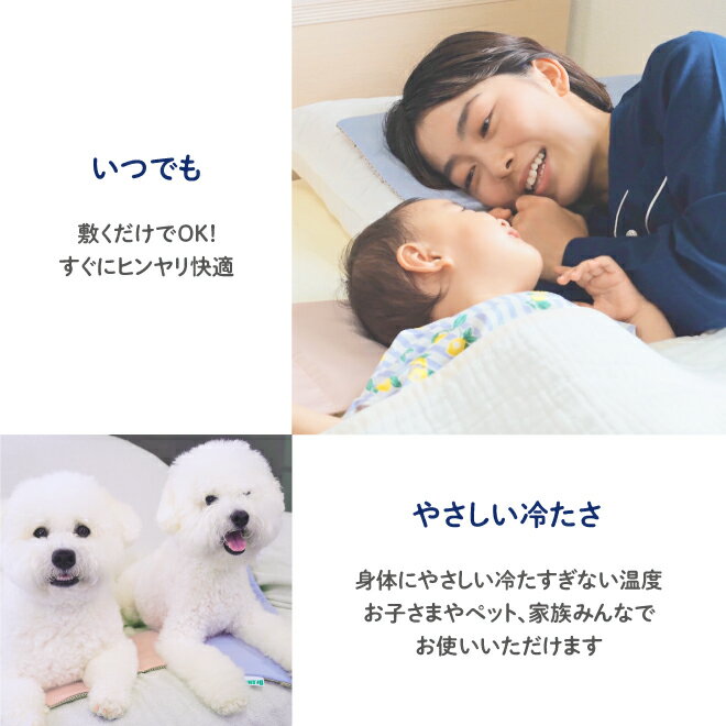 〇冷やさなくても冷たさを実感 枕の上やペットが寝るベッドの下などに置いて、繰り返し使用可能。冷蔵庫で冷やす必要のない*冷感ジェルマットです。冷凍庫や冷蔵庫で冷やさなくても冷たさを実感できる畜冷剤を使用しています。凍らせて使用しないので、冷たくなりすぎず肌当たりが優しい冷感を得られます 〇液状化と結晶化を繰り返す メーカー独自の配合で作られた畜冷剤の原料は融点が29℃。29度を超えると溶け出し、29℃を下回ると再結晶化。蓄冷剤の性質により、液状化と結晶化を繰り返す過程で熱を放出するため、寝返りをした際に冷感が得られます*。接触冷感性の生地を使用したカバーに入れてお使いください *気温や室温が30℃を超えるような場合や長時間使用した場合には、多少ぬるく感じる場合があります。その時は冷蔵庫で30分程度冷やしてからご使用ください。 [商品内容] ・冷却ジェル×3個 ・専用カバー1枚 カバーの色をピンク、ブルーからお選びください。 [サイズ] 約19×48cm [重量] 約800g ※カバー使用時 [材質] <カバー> 表面:ポリエステル90% ポリウレタン10% 裏面:ポリエステル100% <畜冷材> ボウショウ(硫酸ナトリウム) [製造国] カバー:中国製 畜冷材:日本製 [お手入れ] カバーのみ洗濯機洗い可 [使用方法] ・枕の上や、ペットが寝るベッドの下などに置いてご使用ください。 ・お客様のお手元に届く前の保管温度等の影響により、製品中の冷感剤が溶けきって冷たく感じられない場合がございます。 ・初めてお使いいただく際に冷蔵庫で30分程度冷やしてからご使用ください。 ・使用前には水分をよくふき取ってからご使用ください。 ・気温や室温が30℃を超えるような場合や長時間使用した場合には、多少ぬるく感じる場合がございます。 その時は冷蔵庫で30分程度冷やしてからご使用ください。 ・カバーに、本体(冷感剤マット)を入れてご使用ください。 ・通常は冷やさなくても適温になっておりますので、そのままご使用ください。 ・冷感剤が大きく固まったり、誤って冷凍庫に入れてしまった場合は、お湯(45〜50℃)で結晶を溶かしてからご使用ください。 [注意事項] ※本品は医療用品ではありません。やけどや日焼けなどの炎症部分を冷却する目的に使用しないでください。 ※万一、製品に破れや穴があき中身の冷感剤が漏れ出た場合は直ちに使用を中止してください。 ※中身の冷感剤が目に入った場合は、こすらずに水道水で洗い流し、医師にご相談ください。 ※冷感剤が皮膚、衣服などに付いた場合は水かぬるま湯で洗い流してください。 ※本品に先のとがったもので突く、切る等の行為を行わないでください。 ※本品を投げつける、落とす、噛む、強くねじる、強い力で踏む等の強い刺激を与えないでください。 ※お子様や監督が必要な方に使用する場合は、保護者の指導のもとでご使用ください。 ※冷凍庫や氷温室(0℃以下)には入れないでください。 ※廃棄する場合にはお住まいの自治体の指示にしたがって処分してください。 ※本品は冷却専用ですので、電子レンジなどで加熱しないで下さい。 ※使用条件や環境により冷感が落ちる場合があります。冷感には個人差があります。 ※火器、熱源から離して保管、ご利用ください。 <ペットに使う場合> ※火気や水気のそばで使用しないでください。 ※本品はかじり、ひっかき、落下や長期間の使用で破れることがあります。破れた場合は使用しないでください。 ※本品を使用する前に、破損していないか点検してください。 ※噛み癖せがある場合や、予期せぬ行動により破損する場合がりますので、使用中も確認し長時間放置せず、飼い主の責任において充分注意してください。 ※ペットの体調がすぐれない場合や、皮膚に異常がある場合は使用しないでください。 また使用中に異変が見られた場合は使用を中止してください。 ※万一、中身が皮膚についた場合は流水で充分に洗い流してください。 目に入ったり、食べた場合、愛犬に異常が見られるようであれば獣医師に相談してください。 ※中身がベッド等についた場合は、水またはぬるま湯でよく洗い流してください。 ※愛犬の毛に付いた場合は、ぬるま湯でほぐすようにして洗い流してください。 ※使用時に保冷持続時間の変化や傷み、破れ、亀裂などが見られるようになった場合は使用せず、新しい商品に買い替えてください。 ※使用法の誤りや、不当な分解、修理、改造等によっておこる事故については一切責任を負いかねますのでご了承ください。 メーカー希望小売価格はメーカーカタログに基づいて掲載しています