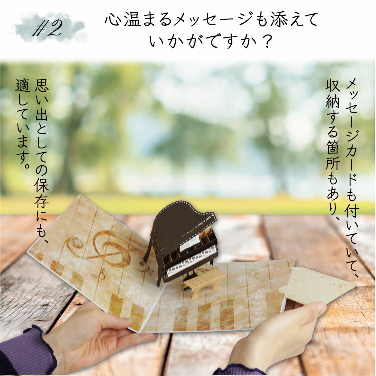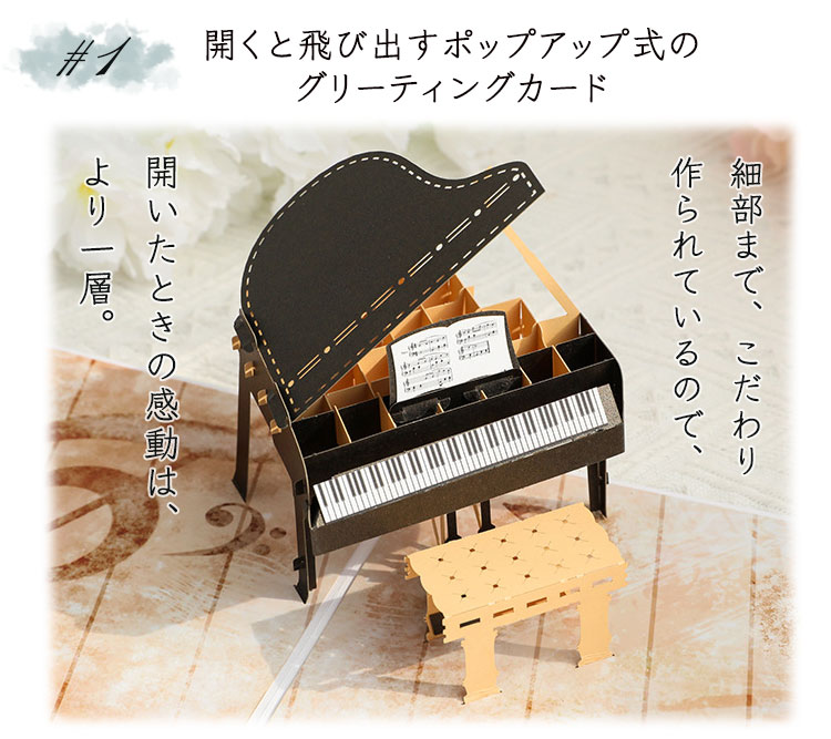 メッセージ カード 3D 立体 カード メッセージカード ピアノ グリーティングカード バースデーカード メッセージ 誕生日カード レターセット カード 封筒付き 楽器 音楽 楽譜 PR-PIACARD【メール便 送料無料】