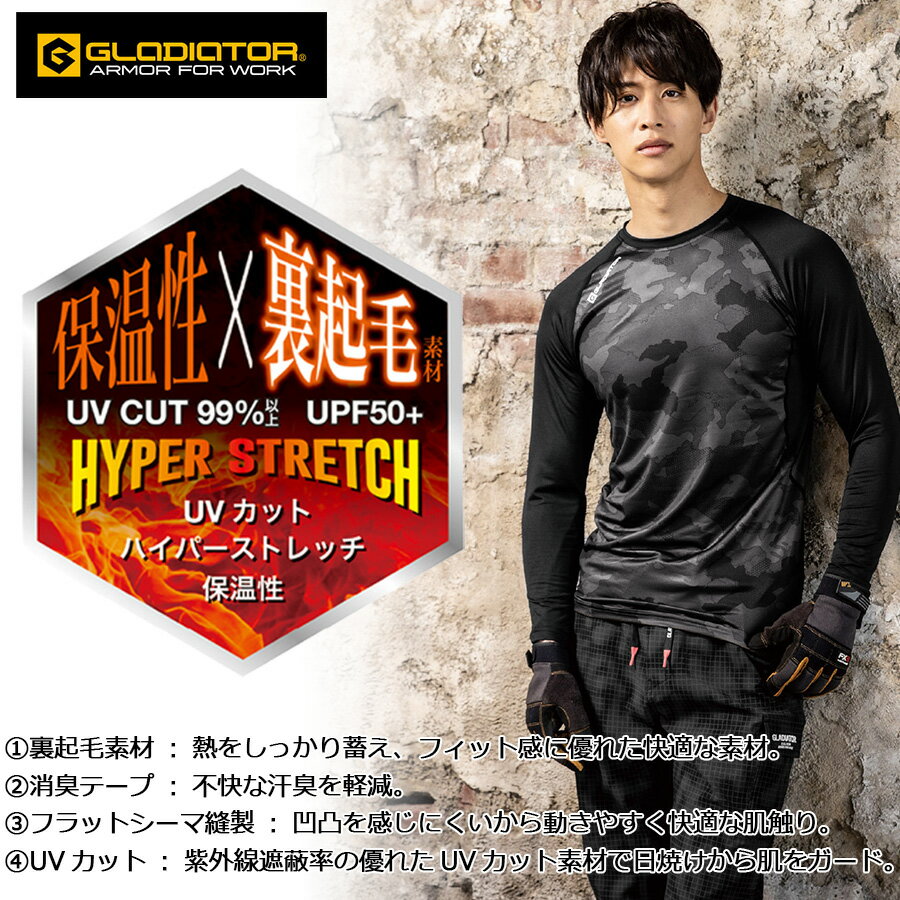 グラディエーター ウォームパワーサポート長袖コンプレッション G-1818 裏起毛 保温 防寒 インナー 作業着 GLADIATOR
