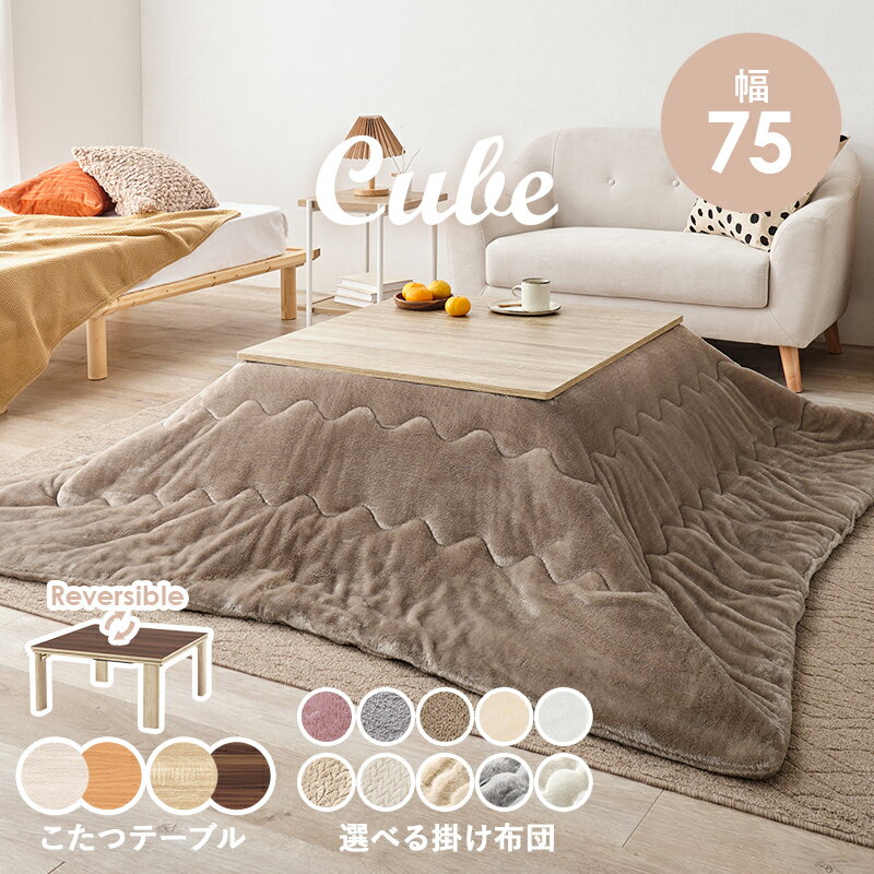 【お得クーポン配布中】<選べるこたつ布団>リバーシブル天板 折りたたみこたつ 正方形 幅75cm【キューブ・メレンゲ・ポカ・ルナ】(75x75 折れ脚 こたつテーブル こたつセット おしゃれ かわいい 折り畳み リビングこたつ 家具調こたつ こたつ布団セット コンパクト こた