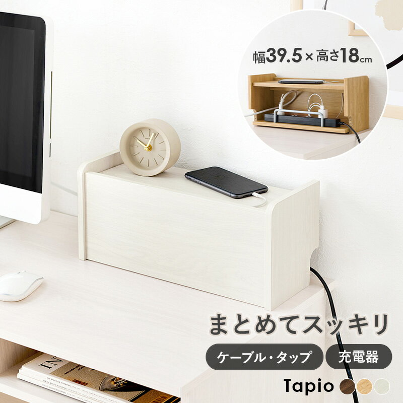 【お得クーポン配布中】ケーブル収納ボックス 1段タイプ【Tapio】タピオ(ケーブル 収納 まとめる ケーブルボックス おしゃれ 北欧 デスク 配線 タップ 整理 テレビ 電源 コード収納 コード隠し 木製 白 スリム 棚 ケース 高さ調節 充電器)