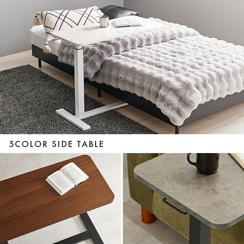 お買い物ガイド 高さを無段階で調節できるガス圧昇降式サイドテーブル。 チェアやソファ、ベッドなど使用シーンに合わせて レバーひとつで簡単に高さを無段階に調節が可能です。 さらにキャスターがついているので移動もラクラク。 カラーバリエーションも ブラウン・ナチュラル・ホワイトウォッシュ・マーブルグレー・マーブルホワイト の豊富な5色からお選びいただけます。 【商品サイズ(約)】幅80×奥行40×高さ65〜94cm 【梱包サイズ(約)】89×49×15cm(8kg) 【材質】 天板:合成樹脂化粧繊維板 脚部:粉体塗装 【生産国】中国 【備考】組立品 メーカー希望小売価格はメーカーカタログに基づいて掲載していますおすすめアイテム ▼テーブル特集 ▼コンクリート調家具特集