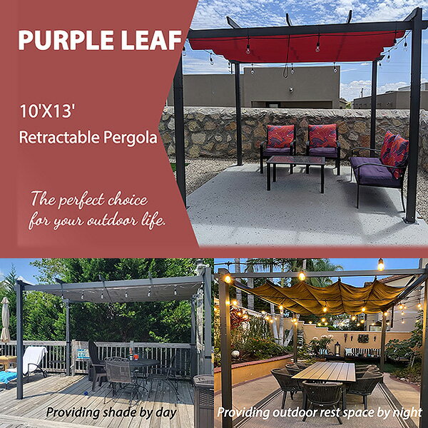 【在庫有り】PURPLE LEAF アウトドア パーゴラ 4×3m シェード付き パティオ ガゼボ キャノピー テント 可動式 スライド式 シェード キャノピールーフ 日よけ オーニング タープテント アルミフレーム ガーデン 庭 屋外 テラス バーベキュー 遊び場