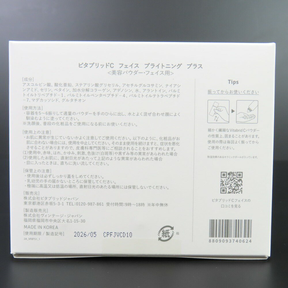 ビタブリッド 新品 未開封 C フェイス ブライトニング プラス 3g 3本入り 美容パウダー BRIGHTENING 化粧品 ホワイト【中古】未使用品 本物 Vitabrid