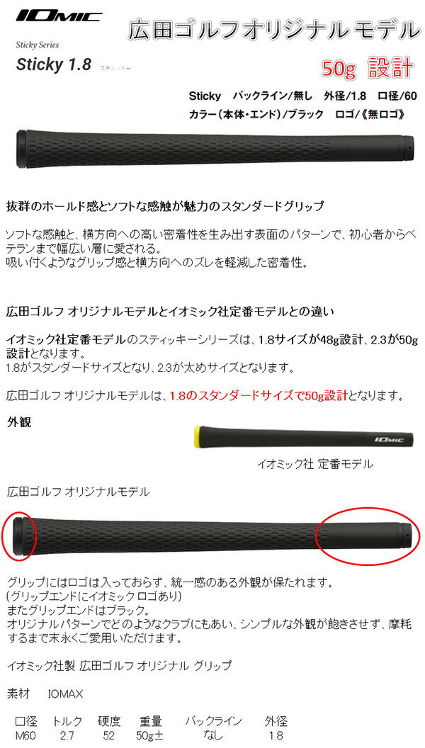 イオミック社製 広田ゴルフ オリジナル スティッキー 1.8 グリップ 【 アイアン ウッド用 】 【ネコポス 対応可】