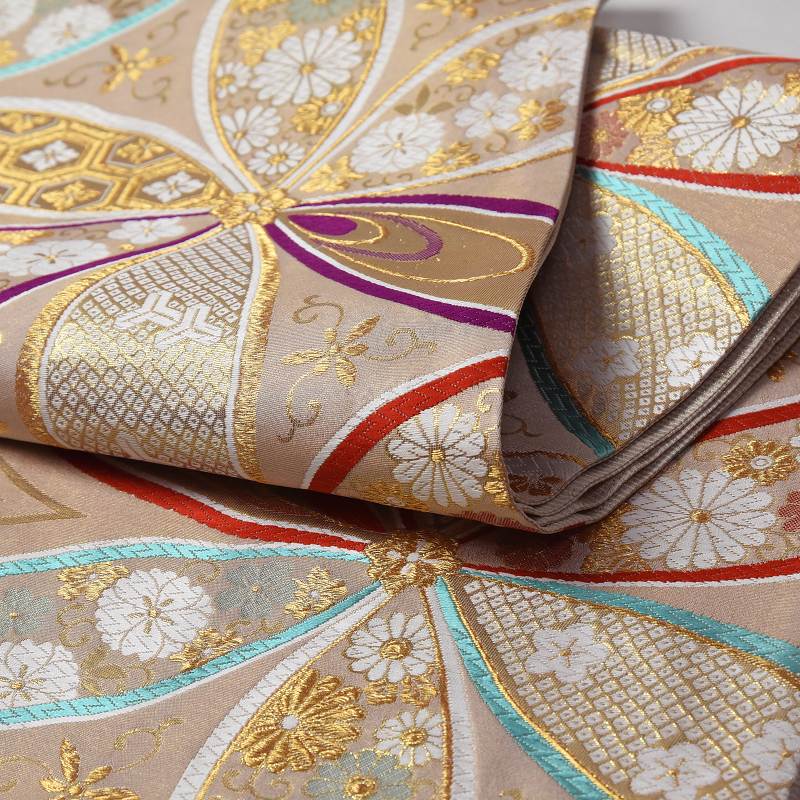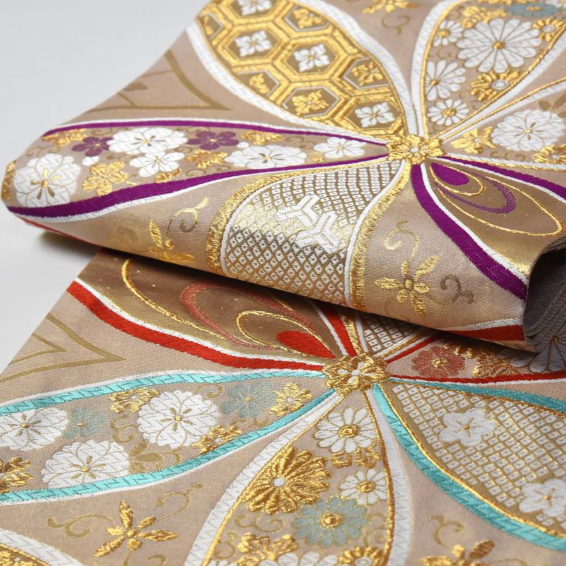 振袖用 袋帯 お仕立て付き 正絹 西陣織 京都イシハラ謹製 大花びら 生成りに淡い金色 着物/和服/礼装用/成人式 送料無料