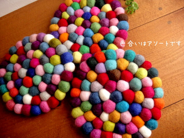 最安値挑戦中★直径18cm前後★カラフルポコポコフエルト鍋敷き なべ敷き カラフルポップフェルトボール北欧テイストの可愛いナベ敷きポットマットコースター雑貨通販フェルトコースター【RCP】