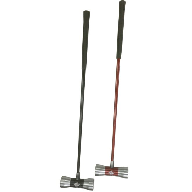 メーカー希望小売価格はメーカーカタログに基づいて掲載しています 商品詳細 クラブ 新形状・DEEPバタフライヘッド採用。ハイフレックスカーボンシャフト装着した芝コース、ロングディスタンス攻略モデル。 ハイフレックスカーボンシャフト ”しなり”を重点に開発したシャフトです。芝・長距離コースの攻略に最適です。打撃時の衝撃も和らげてくれます。 ディープ(DEEP)バタフライヘッド ヘッドの長さ150mm、構えやすく誰でも簡単に目標に向かって打てる形状です。ヘッド部(本体を細くフェイス部を深く削り込みスマートなデザインにしました。更にフェイス部をテーパー状にする事によりヘッド長150mmを感じさせない設計です。深い芝生(ラフ)などでもヘッドが抜けやすくキズがつきにくい形状です。 マレットゴルフ・クラブ AR-150C シャフト 70cm/75cm/80cmからお選びください。 (ヘッド天面〜グリップエンド) シャフト MS-2 ハイフレックスカーボン(16Φ) ヘッド 高力アロイ(40Φ-全長150mm) フェイス アルミアロイ (50Φ-3R/3R)厚み45mm テーパータイプ 総重量 625g(75cm) グリップ G25 パワーグリップ(25φ) カラー ブラック/レッド 全日本マレットゴルフ連盟・日本マレットゴルフ協会認定品 ◆無料ギフト包装実施中!ギフト対応についての詳細はこちら