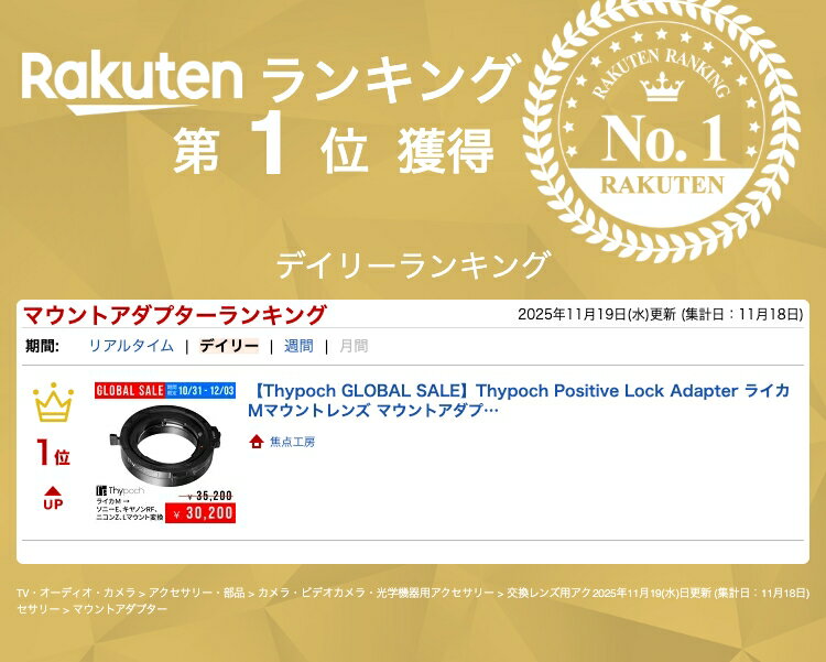 【P2倍!BF】【Thypoch GLOBAL SALE】Thypoch Positive Lock Adapter ライカMマウントレンズ マウントアダプター 国内正規品 保証1年 ソニーE変換 ニコンZ変換 キヤノンRF変換 Lマウント変換 ARRIマウント変換 オールドレンズ レンズアダプター 焦点工房