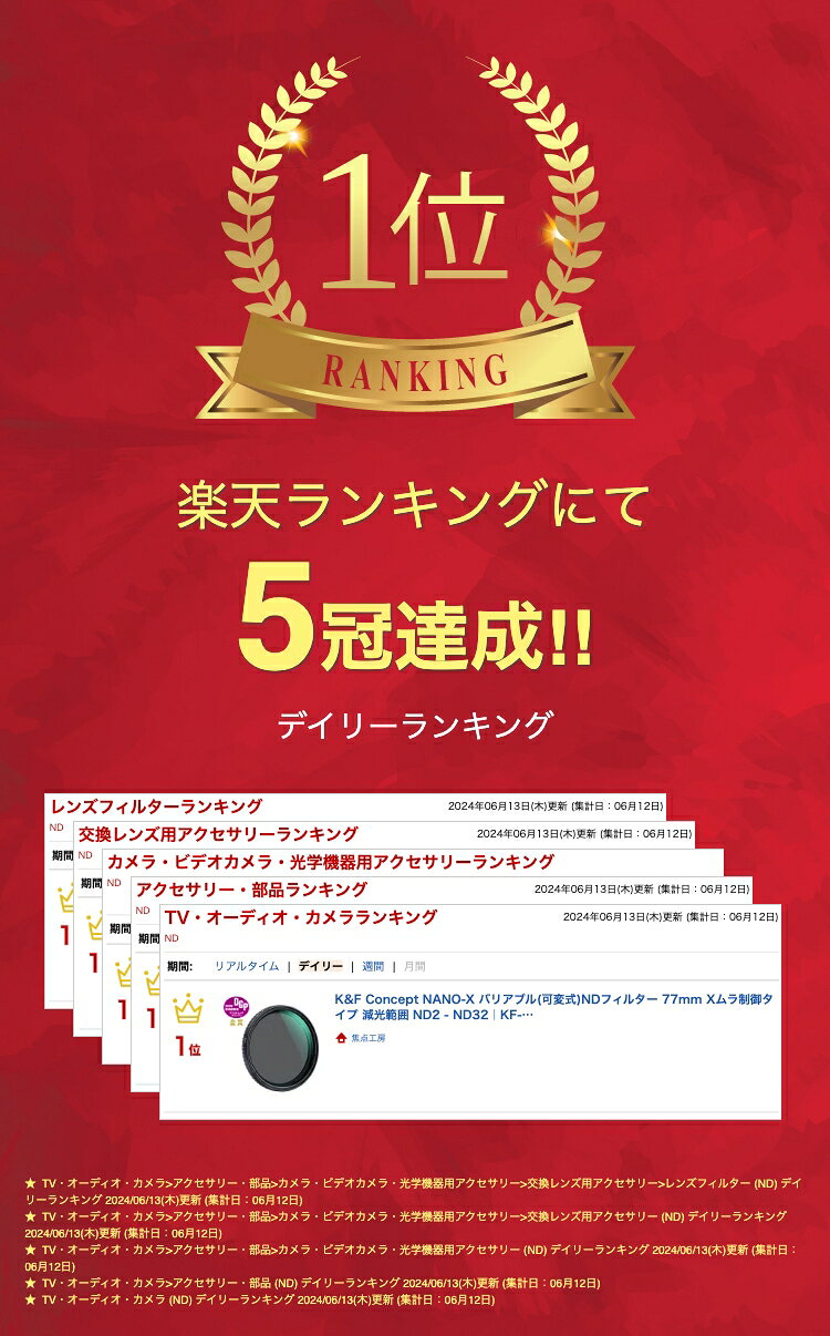 【P2倍!SS】【楽天ランキング1位】K&F Concept NANO-X バリアブル(可変式)NDフィルター 77mm Xムラ制御タイプ 減光範囲 ND2 - ND32|KF-77NDX2-32