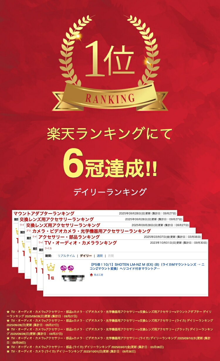 【楽天ランキング1位】【DGP受賞】 SHOTEN マウントアダプター LM-NZ M (EX) (B)( ライカMマウント レンズ → ニコンZマウント 変換)ヘリコイド付き 国内正規品 メーカー保証1年 Leica m Nikon z 繰り出し8mm ブラック 焦点工房
