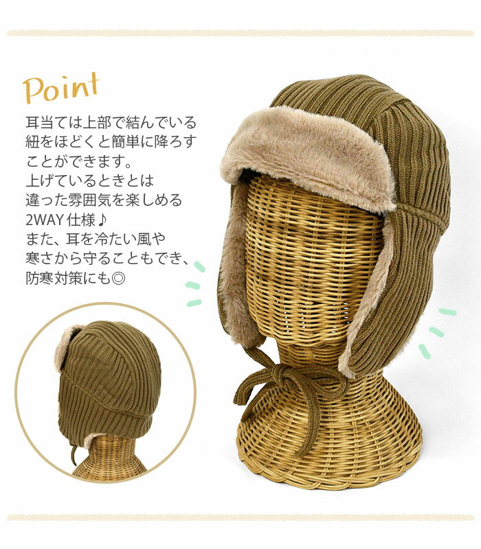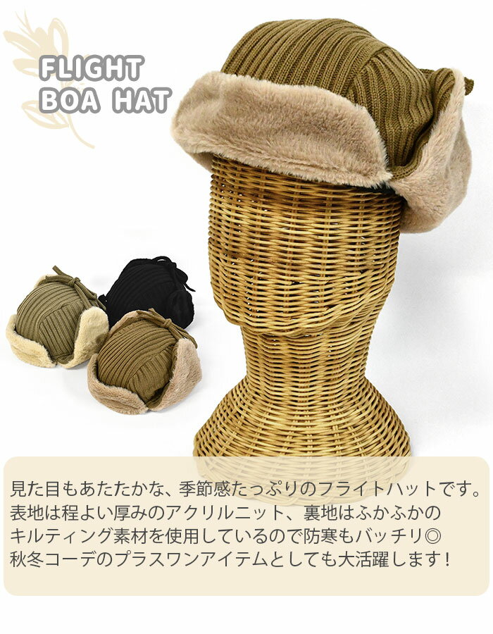 フライトボアハット /レディース 女性 ニット ボア ファー フェイクファー フライトキャップ パイロットキャップ ニットキャップ ニット帽 キャップ 2way 耳あて付き 耳当て付き帽子 耳当て 耳付き 帽子 かわいい 可愛い おしゃれ オシャレ キャンプ 防寒 防風 秋冬 秋 冬/