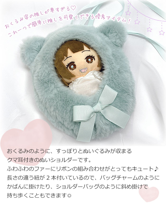 クマ耳おくるみ 2way ぬいショルダー ぬい活 ぬい撮り ぬい服 ぬい用 ファー 耳付き リボン 着ぐるみ 着せ替え 洋服 服 ぬいぐるみ ぬいぐるみ用 ぬい 人形 マスコット 15cm ミニ 持ち運び チャーム バッグチャーム 斜めがけ 斜め掛け 可愛い かわいい おしゃれ グッズ