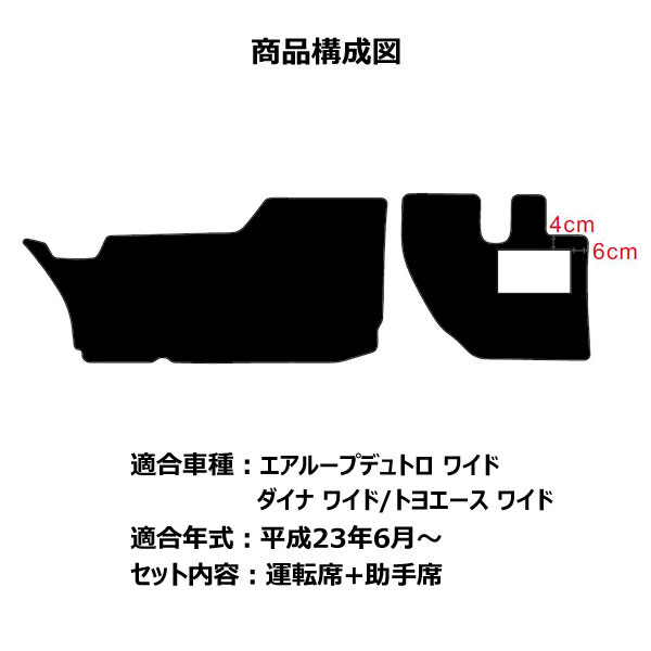 【P10倍 (11/23)限定】エアループ【デュトロ ダイナ】ワイド コイルフロアマットヒールパッド有り 運転席 助手席2枚セット H23.06〜