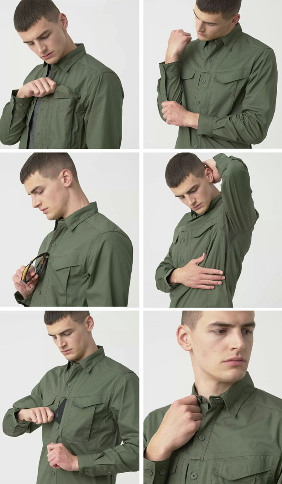 ヘリコンテックスのアーバンライン、長袖シャツ。 縮みが少ないコットンポリ混紡の生地に、スパンデックスが織りこまれていてシャツ全体に伸縮性があり、特に横方向の伸びに強いです。襟の内側はボタンダウンのように固定されており、左右フロントのフラップ付きポケットのサイドには隠しポケットも付いているので、すっきりした見た目ながら機能性も十分です。 商品名 HELIKON-TEX Defender Mk2 Shirt LongSleeve ディフェンダー マークツー シャツ 長袖 サイズ EU-XS/EU-S/EU-M/EU-L/EU-XL 採寸画像 カラー Black/Khaki/OliveGreen 素材 コットン58% ポリエステル40% スパンデックス2% 生産国 ベトナム 注意事項 ●多店舗と在庫を共有しており、注文のタイミングにより売切れとなってしまう場合がございます。 ●お客様のご覧になっている環境により、商品の色が違う場合がございます。 ●商品によっては、サイズ数値に若干の誤差が生じる場合がございます。 以上、ご了承よろしくお願い致します。 サイズ 肩幅 身幅 着丈 袖丈 EU:XS(US:XXS) 43 cm 51 cm 71 cm 59 cm EU:S(US:XS) 46 cm 53 cm 76 cm 65 cm EU:M(US:S) 47 cm 55 cm 79 cm 68 cm EU:L(US:M) 49 cm 58 cm 80 cm 70 cm EU:XL(US:L) 50 cm 60 cm 81 cm 71 cm OTP OUTDOOR TACTICAL PANTS アウトドア タクティカル パンツ この商品をみる WOLFHOUND "HOODIE" JACKET CLIMASHIELD この商品をみる SFU NEXT PANTS MK2 ネクスト パンツ この商品をみる WINTER WARDEN SHIRT この商品をみる TROOPER MK2 JACKET この商品をみる