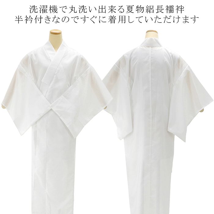■□■□■□■□■□■□■□■□■□■ 【商品説明】 ポリエステルの夏物洗える絽長襦袢です。 洗濯機で丸洗い出来る長襦袢です。 半衿付きですのですぐに着用していただけます。 ご希望のサイズをお選びください。 ◆色:白/柄:無地 [サイズ] M寸:身丈130cm/裄丈63.5cm/袖丈49cm L寸:身丈133cm/裄丈65.5cm/袖丈49cm ◆中国製 ■仕立済み■ ■□■□■□■□■□■□■□■□■□■◆◇新品からリサイクル・中古まで。。着物や帯・和装小物が勢揃い。。◆◇