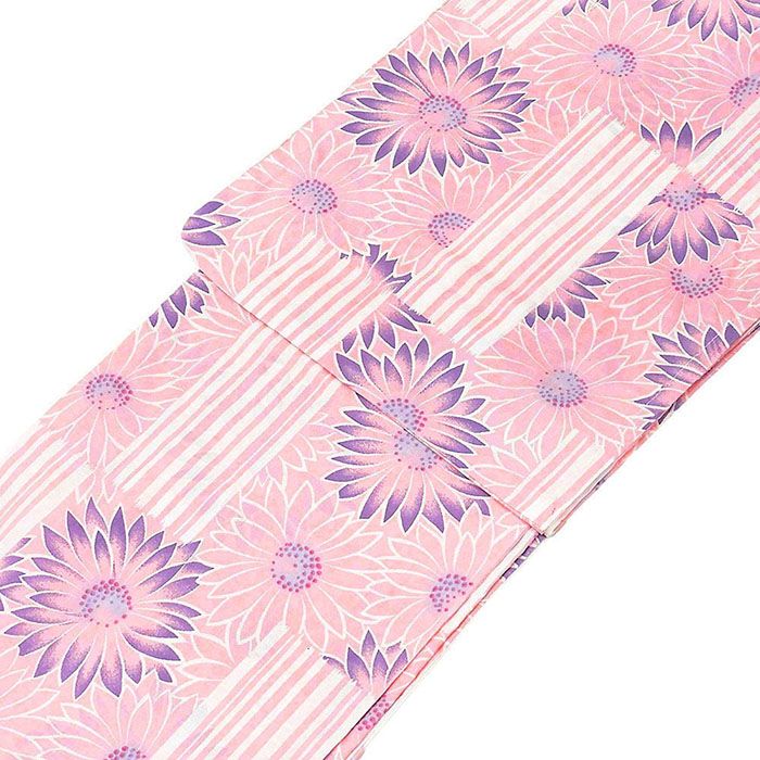 ■□■□■□■□■□■□■□■□■□■□■□■□■□ 【商品説明】 綿・絽の浴衣です。 お祭りや夏のお出掛けを素敵に彩る、肌ざわりの良いさらりとした着心地の浴衣です。 ◆色:ピンク×オフホワイト・藤紫他 ◆柄:菊花縦縞模様 ◆フリーサイズ:身丈163cm/裄67cm/袖丈49cm ◆適応身長:152cm~167cm ◆素材:綿100% ◆中国製 ■新品仕立済■ ■□■□■□■□■□■□■□■□■□■□■□■□■□◆◇新品からリサイクル・中古まで。。着物や帯・和装小物が勢揃い。。◆◇