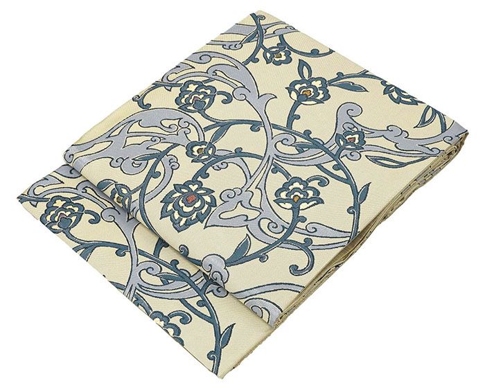 ■□■□■□■□■□■□■□■□■□■□■□■□ 【商品説明】 西陣[山田織物謹製]の袋帯です。 サンドべ-ジュ地に藍鼠色やブルーグレー・渋め紫などの多色と金銀糸で唐花模様が柄付けされています。 モダンエレガントでお洒落な着姿を演出する袋帯です。 ◆柄:唐花模様 ◆六通柄 ◆生地:絹70%以上・ポリエステル30%未満 ◆長さ:約4m48cm・幅31cm ◆芯入り仕立 ◆織元:山田織物 【状態】 新品仕立済みで染みや汚れなどはありません。 ■ご希望により下記のオプションも承ります。 ガード加工:+5000円 パールトーン加工:+9900円 ※加工日数:約10~14日 ■仕立済み■ ■□■□■□■□■□■□■□■□■□■□■□■□◆◇新品からリサイクル・中古まで。。着物や帯・和装小物が勢揃い。。◆◇