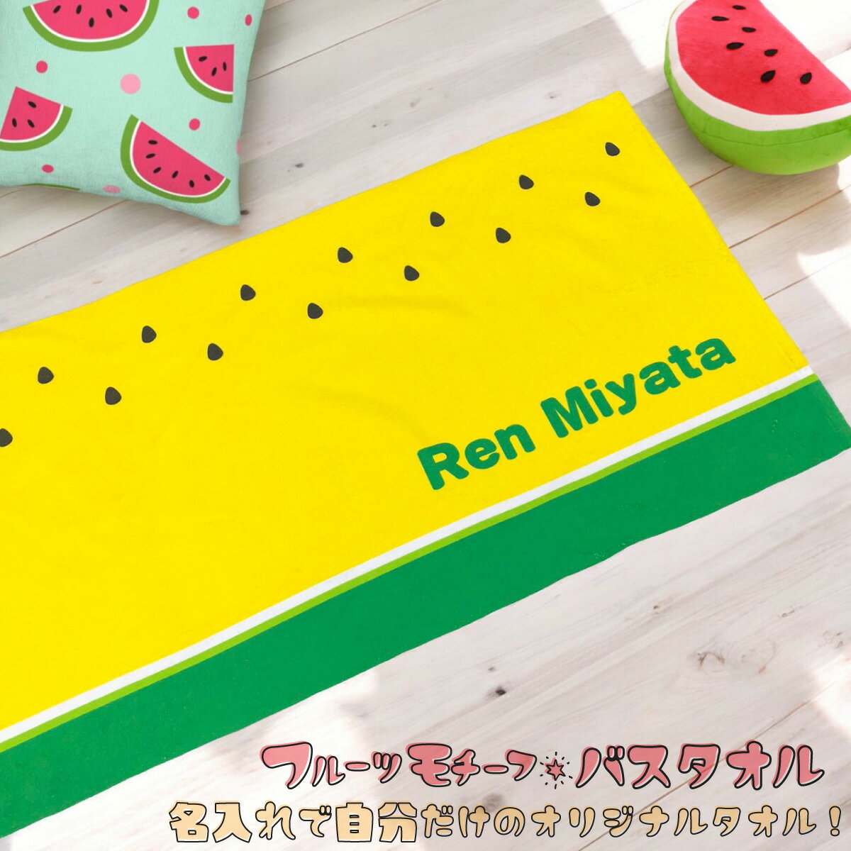 【フルーツ バスタオル 】名入れ バスタオル フルーツ柄 大判タオル【1枚から作れる オリジナルタオル 苺 スイカ パイナップル いちご柄 かわいい 名前入り タオル 誕生日 プレゼント ギフト 女の子 保育園 学校 キッズ 子供 グッズ 卒園 お友達 プレゼント 】