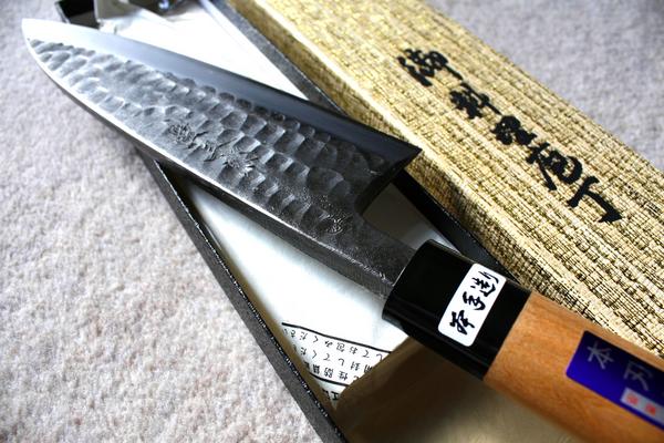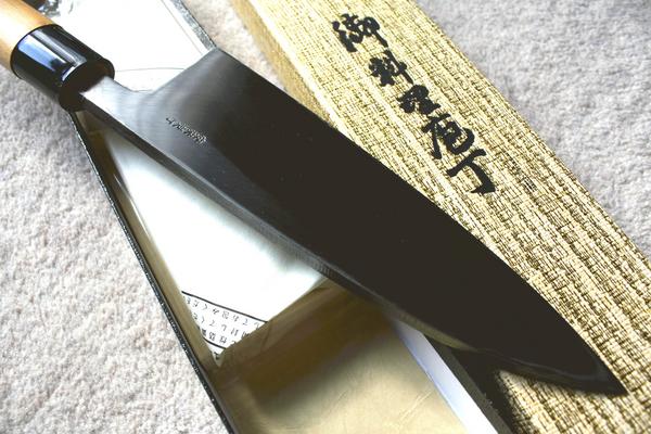 ■製造メ−カ−豊三郎 ■サイズ 刃渡り 210mm・・・業務用・一般家庭で使うサイズです! ハガネ材を安来鋼白紙で熟練の職人が鍛えていますのでその切れ味は抜群です!黒鎚目打ちが非常に美しくまた、いまでは珍しい炭焼きで打っています。