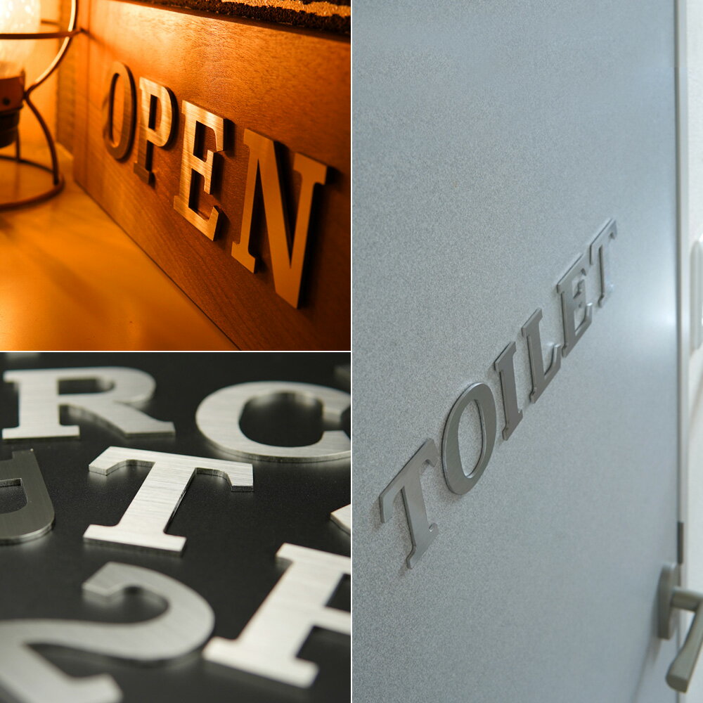 【レビュー特典】 表札 看板 切り文字 ステンレス表札 切り抜き文字 店舗看板 ドアサイン 切り文字表札 オーダー 選べる板厚&サイズ おしゃれ アルファベット 数字 ネーム プレート 錆に強い ステンレス 戸建 マンション 宅配ボックス オフィスサイン 屋外 日本製 KC13