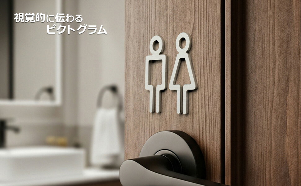 商品詳細 材質 ステンレス (SUS304) 表面仕上げ ヘアライン(HL) カラー シルバー サイズ 男女セット 60 × 60mm 75 × 75mm 90 × 90mm 内容 男・女 2点セット 板厚 2mm 裏面 両面テープ付き 生産国 日本 このサインプレートは、トイレの案内に最適なステンレス製のピクトグラムです。錆に強く、長期間にわたって美しい状態を保ちます。シンプルでモダンなデザインは、北欧風のインテリアにも調和し、どんな空間にも洗練された印象を与えます。取り付けも簡単で、テープ付きのため、すぐに使用可能です。サイズは6cm、7.5cm、9cmから選べ、様々なドアに対応します。 注意事項 男女セット販売のみとなります。 ヘアライン方向は横方向のみ、ご指定は不可となります。 本商品を取り扱う際は、ケガなどにご注意ください。 当店では両面テープ、ボンドなどの取り扱いがございません。 本商品のデザイン、仕様は予告なく変更する場合があります。 【検索キーワード】 男女トイレ案内板 男子 女子 男性 女性 御手洗い ドア プレート 男性 女性 男女別 ピクトサイントイレ ピクトサインプレート 矢印 方向 テープ 貼り付け シール付 おすすめ お洒落 かっこいい シンプル スタイリッシュ ランキング 必需品 プレゼント ギフト 上質 高級 高価