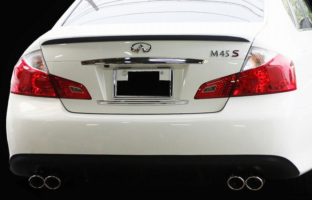 95Φオーバル4本出しストレート □商品詳細 【こだわりポイント】 ◆W95×H80オーバルを採用。二重管構造になっており粗目のインナーパンチングを施しております。 ◆サイレンサーレスによる音量音質の向上。抜けの良いレーシーなサウンドを奏でます。 ◆車種専用曲げパイプによりスムーズな排気の流れと溶接箇所を減らす事でより強度も確保しております。 ◆ローダウン車にも対応底上げ設計。 ◆非常に高い耐久性を誇るSUS304オールステンレス製の採用。 【マフラー詳細】 ・左右出し(4本出し)マフラー ・テール寸法/W95×H80オーバル×4 ・パイプ径/50.8Φ ・材質/SUS304ステンレス ・消音器/無し(保安基準適合外) ・リアピース交換 ・付属品/ボルトSet×4、ガスケット×2 □適合詳細 ・車種/Y50系フーガ ・型式/GY50 ・年式/H17.8~H20.10 ・排気量/4.5L ・駆動/2WD ・グレード/450GT ・備考/- □出荷までの納期 ・決済確定後10~14日出荷を予定しております。 □発送詳細 ■佐川急便 【送料無料】 ※沖縄、離島の場合、中継料が追加されますのでご注文前に必ずご確認お願い致します。 □注意事項 ※製品は全て受注生産となります。 ※部材欠品または、受注が混み合っている場合には、納期が大幅に変更致しますのでご注文前に必ず納期の確認をお願い致します。 ※写真は他車種を流用する場合がございます。デザイン、仕様は予告なく変更致します。 ※競技用マフラーのため一般公道での走行はお控えください。 ※社外エアロや社外マフラーとの組み合わせにつきましては分かりかねます。 ※事故車両やマフラーが歪んでいる車へ装着の場合は通常に装着できない場合がございます。 ※商品到着後は必ず検品をお願い致します。傷、凹み、不備がある場合は7日以内にお申しくださいませ。以降の場合は保証対象外となります。 ※商品を装着し、排気を通してからの返品はいかなる場合でも致しかねますので必ず商品のご確認をお願い致します。商品装着の際に必要なものは付属しておりますが純正部品を流用する場合もございます。排気漏れ等のクレームは一切責任を負いません。汎用ガスケット等を使用してお客様側にてご対応くださいませ。 ※当商品以外に費やした取り付け工賃や加工賃は、いかなる場合でも一切の責任を負いかねます。 ※直接のお取引は行っておりませんので発送のみとなります。 ※決済確定してからのお客様側によるキャンセルはお受け出来かねます。 ※営業時間は10時~18時となります。定休日は水曜日、日曜日、祝日となります。またゴールデンウィーク、夏季冬季、年末年始にお休みを頂きます。95Φオーバル、インナーパンチング、ストレート