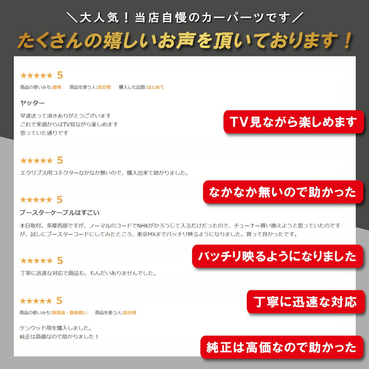 ★高感度★ブースター内臓型ケーブル〜メール便発送可能!ブースター内蔵型アンテナ〜こちらでは、お好きなアンテナケーブルを選択できます。弊社提携工場での製造のため、品質を落とさず、価格を極限まで落とすことに成功しました。純正品ではありませんが、専門家監修により作成された製品ですので、御安心ください。ブースター内蔵型で独自に最適なアンテナゲインを調整しています。ワンセグからフルセグまで、地デジに対応した機器の外部アンテナとしてご使用いただけます。ケーブル—ブル長さは5mとなります。◆◆注意事項◆◆Eononのチューナーはブースターが動作しない可能性があります。ご自身のアンテナ、コネクタご確認いただき、画像や寸法を確認の上御購入いただきますようお願い致します。天候・場所等により受信感度が悪くなる場合がありますが異常ではありません。車種ごとの取付説明書はございませんのでご了承ください。電波の受信感度の向上を保証するものではありません。新品未使用品ですが外観の汚れ保管の際の傷等がある場合がございます。メール便での発送は厚み制限の関係上製品をそのまま封入する場合があります。御了承ください。外観の傷、商品の若干の傷等は使用上問題ありませんので、ご容赦ください完璧を求める方、極端に神経質な方の購入はご遠慮ください写真はイメージです写真と実際の商品の外観が予告なく変わる場合がありますが、使用には問題ありませんのでご理解くださいブラウザの関係で実際の色とは異なる場合がございます本商品は到着後100日間の長期保証が適用されます加工および一度使用した商品、の返品及び交換には対応できません。(到着後すぐに目視にてコネクター形状をご確認ください)ノーサポート商品です。ご自身で取り付けできない場合は専門の知識を持った専門店で取付けを行うことをお勧めいたします。
