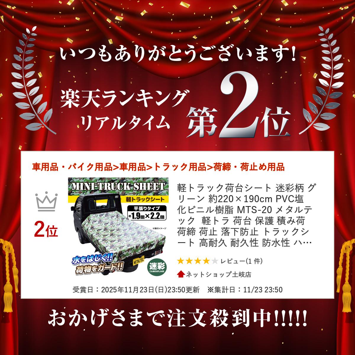 商品説明 ★防水&耐候性に優れた軽トラックの荷台用シート ★しなやかで使いやすいPVC生地で耐久性抜群! 【材 質】PVC塩化ビニル樹脂 →ポリエステル素材はこちら 【カラー】迷彩柄グリーン 【サイズ】約220×190cm 【重 量】2200g 【適応車種】軽トラック用 【付属品】取り付けゴム 【検索キーワード】 軽トラック 2m 2.2m 1.9m 200cm 190cm サイズ 積み荷 保護 落下防止 荷台 トラックシート 耐久性 防水性 エステル帆布 4隅 18か所 数か所 ハトメ 設置 長さ 4m ゴムベルト 2本 荷掛けフック トラックシート 荷台カバー 荷台シート トラックシートカバー 帆布シート 平シート 高耐久 防水 エステル帆布 厚手 厚め 大判 大型 荷掛けバンド ベルト ゴムロープ フック付き ハトメ 車用品 バイク用品 車用品 トラック用品 荷締 荷止め用品 帆布 シート 軽トラック 軽トラ 軽トラック用 軽トラ用 平ボディ ハイゼット アクティ キャリィ ミニキャブ サンバー スクラム ボンゴ 日本車