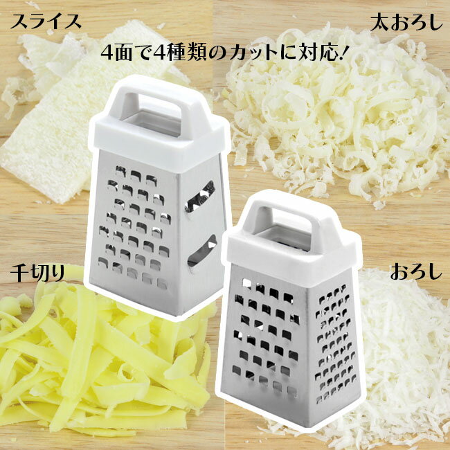 チーズおろし器 コンパクト チーズグレーター コンパクトサイズ おろし器 太おろし 細おろし 千切り スライス 四種類のカット 手間いらず チーズロワイヤル エッチング4面 チーズグレーター パール金属 扱いやすい/エッチング4面チーズグレーター プチ