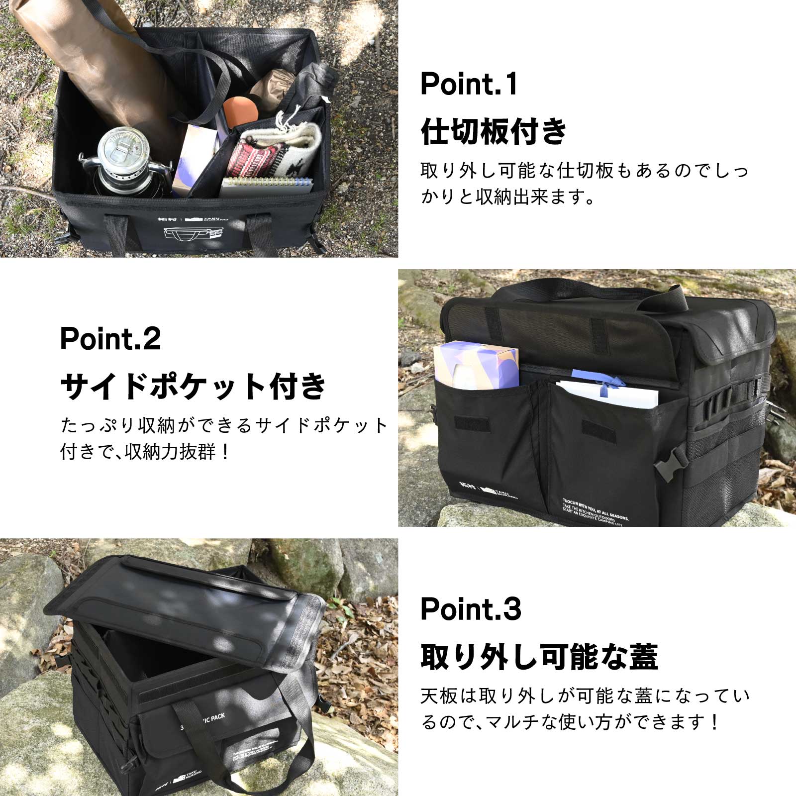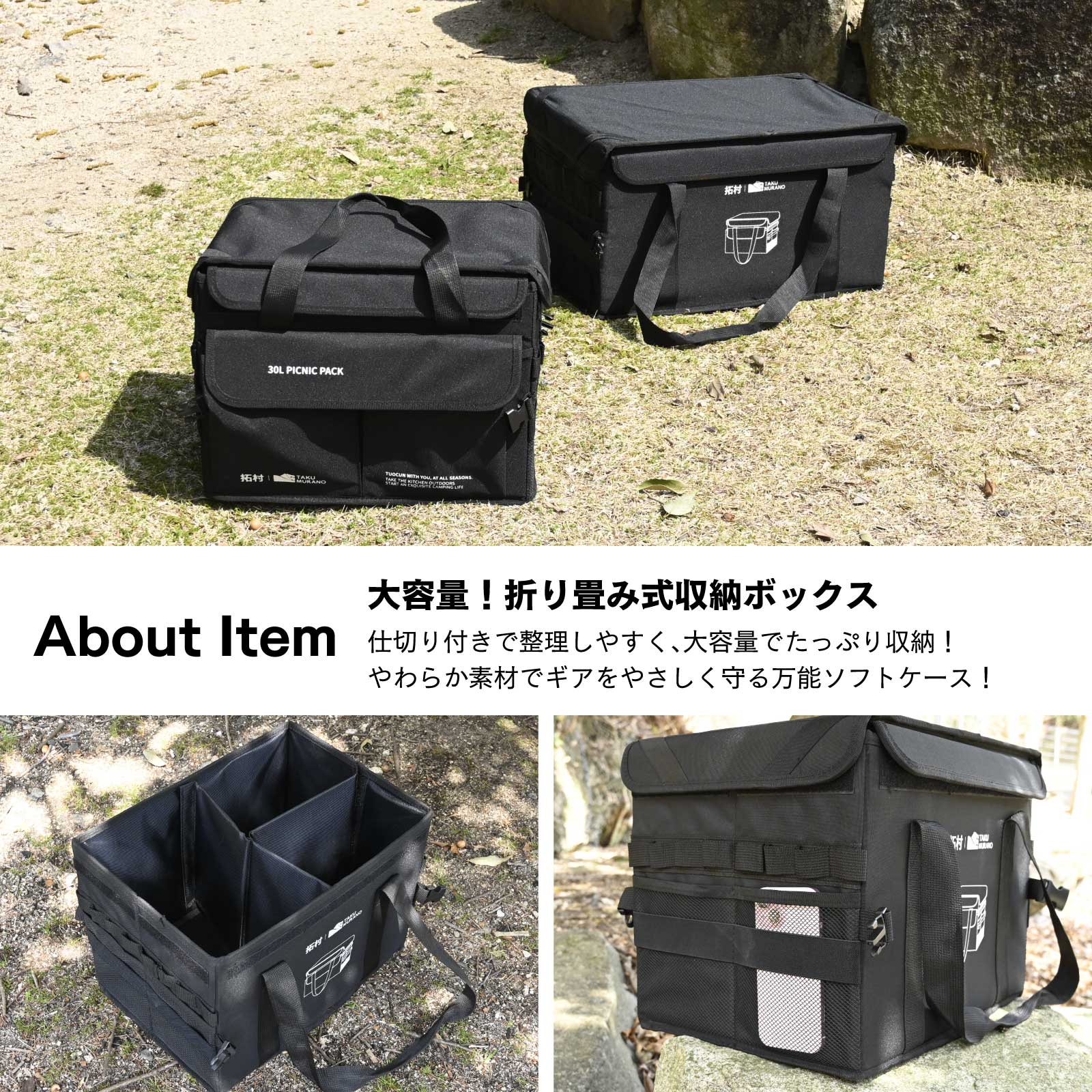 waku fimac 多機能 收納ケース 30L 57L 自立式収納バック 収納ボックス 大容量 600D オックスフォード アウトドア 野外登山 キャンプ