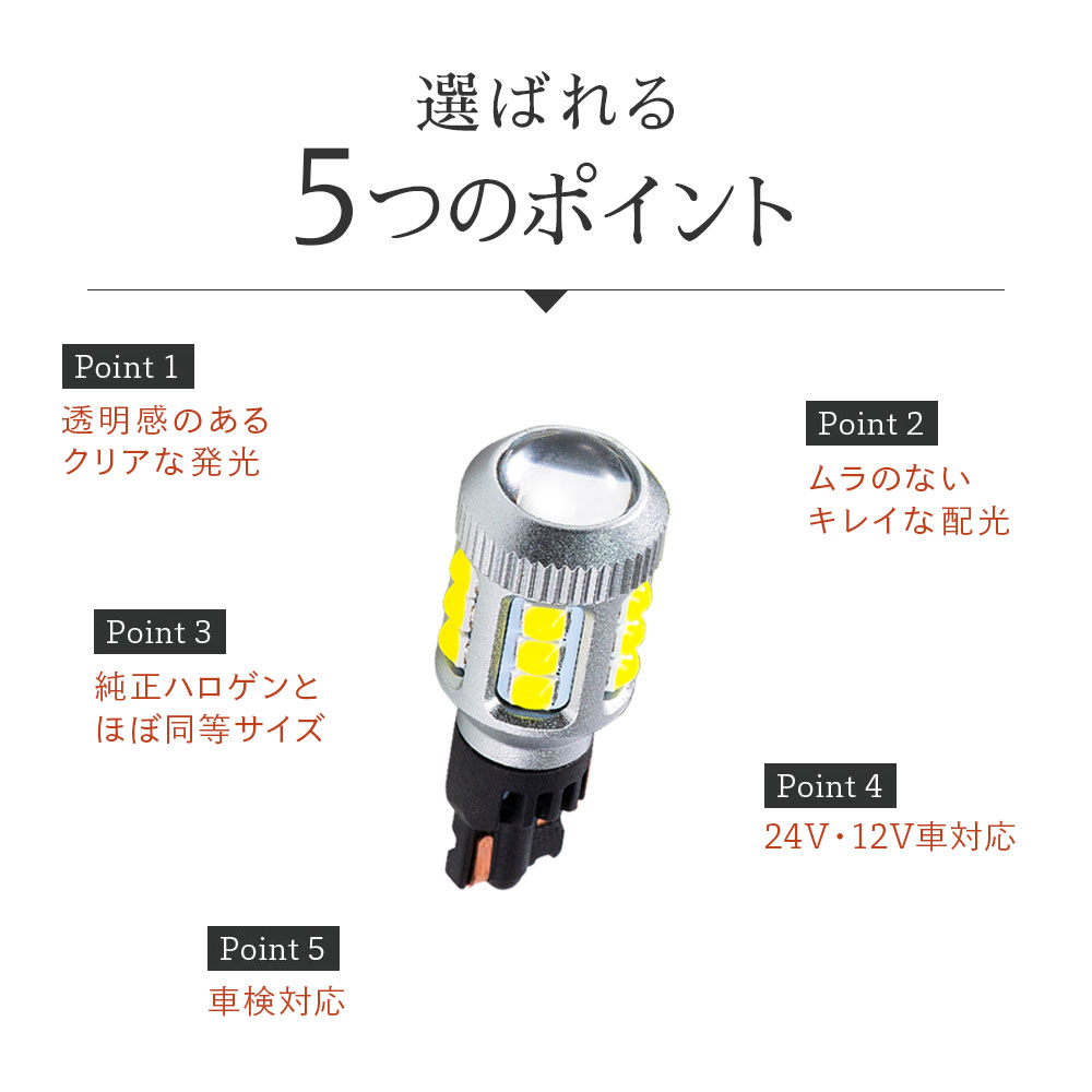 HID屋 LED バックランプ T16 24V対応 トラック ホワイト 爆光 省エネ 車検対応 特注の明るいLEDチップ 6500k 2個セット T16規格 LED バルブ