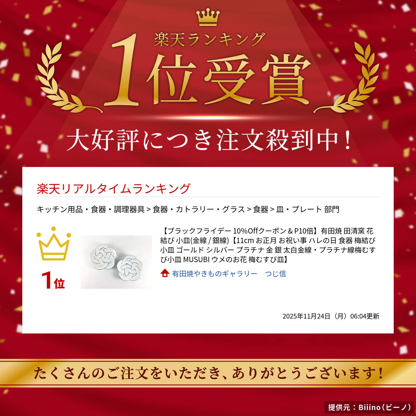 【スーパーセール 全品10%Offクーポン & P5倍】有田焼 田清窯 花結び 小皿(金線 / 銀線)【11cm お正月 お祝い事 ハレの日 食器 梅結び小皿 ゴールド シルバー プラチナ 金 銀 太白金線・プラチナ線梅むすび小皿 MUSUBI ウメのお花 梅むすび皿】