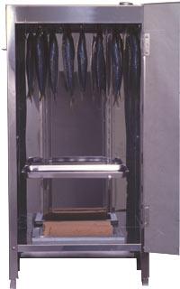 燻製ってなあに? 燻製は塩漬けした肉や魚に木材などを燃やした煙をかけて特有の風味と保存性を持たせたものをいいます。 たとえば、かつお節や秋田のいぶりがっこは日本独特の燻製ですね。 また、ハムやソーセージも家庭で日常的に利用されている燻製品です。 燻製の保存性の原理 燻製の保存性の原理は、 1燻煙中の物質が持つ殺菌・防腐効果 2食塩による脱水効果、および製作工程中の脱水効果 この2つに分けることができます。 燻煙中の物質が持つ殺菌・防腐効果 燻煙をかけると、チップから発生する成分が、肉や魚を腐敗させる菌を減らしたり、殺したりする効果を持っています。 その成分は、フェノール系化合物やアルデヒドで、木材中の主要3成分のセルロース、ヘミセルローズ、リグニンが熱分解してできます。 燻煙時の防腐効果としてもうひとつ、フェノール化合物やアルデヒドが燻製中の食品に反応してできる樹脂膜の役割も大きなものです。この樹脂膜は、食品のまわり中を囲み、以後、外部からの雑菌の侵入を防ぐのです。 食塩による脱水効果、および製作工程中の脱水効果 フェノール系化合物やアルデヒドは殺菌・滅菌を積極的に行う成分ですが、食品の水分を少なくするというのは、ネガティブな殺菌・滅菌効果をもたらします。 雑菌も生物の一種ですから、繁殖や生命維持のために水分は欠かせません。そこで水分を少なくすることで、滅菌あるいは殺菌するというのが塩蔵法の原理です。 燻製づくりの工程では、下ごしらえした材料を一度塩漬けし、過度な水分を取り除いて燻製効果を高め、味をよくするとともに滅菌・殺菌処理をするのです。その後塩抜きした後に行われる風乾の工程も、同じく脱水効果による滅菌、殺菌効果をもたらしてくれるわけです。 燻製の種類 燻製と一言にいっても煙をかける時間や、スモーカー内の温度によって ●冷燻法 ●温燻法 ●熱燻法 の3種類の分けられます。 下ごしらえや塩漬けのやり方も製法ごとに違います。 ●冷燻法例:生ハム・スモークサーモン スモーカー内の温度を15〜20℃に保ち、長時 間燻煙する方法です。 素材の水分を取り除くので、1か月以上の保存が可能ですが、仕上がりは少々硬くなります。 生の状態で食べたい場合 は、香りづけ程度に30分〜2時間燻煙します。 スモーカー内の温度を低く保つため、気温の高い季節は避けなけ ればなりません。 ●温燻法例:ベーコン・ロースハム・ニジマスの燻製 30〜80℃で、2〜5時間燻煙します。 季節を 問わず、比較的短時間で作れるため、魚・肉共 に最も一般的で、手軽に行える方法といえるで しょう。 50%以上も水分が残り、ソフトで風味豊かな 燻製ができあがります。 保存性はあまりよくあ りませんが、真空包装をして冷蔵庫に入れてお けば、ある程度の保存は可能です。 ●熱燻法例:ステーキなど中華鍋のようなスモーカーでガスレンジなどの上でやる燻製 90〜140℃で、10〜30分ほどで燻煙処理を してしまう一番手軽な燻製法です。 仕上がりの色調、香りともすぐれた燻製ですが、保存性が悪いので、調理したらすぐ食べるつもりで作った方がよいでしょう。 [ 仕様 ] ◇材質:ステンレス・スチール ◇サイズ:W400×D325×H820mm 組み立て式(ビス止め)、側面に取っ手付 ◇重さ:9kg ◇付属品:バイメタル式温度計(0〜100℃)、棚受けアーム4本、棚網1枚、脂受け皿1枚、スモーク皿1枚、吊り下げ棒2本、Sカン4本 ★適した燻製品 ベーコン、ロースハム、ジャーキー、サーモン、その他魚介類 ※こちらの商品は取り寄せ品となってます。 ご注文いただいてから4〜5日(営業日)後の発送となります。 予めご了承下さい。