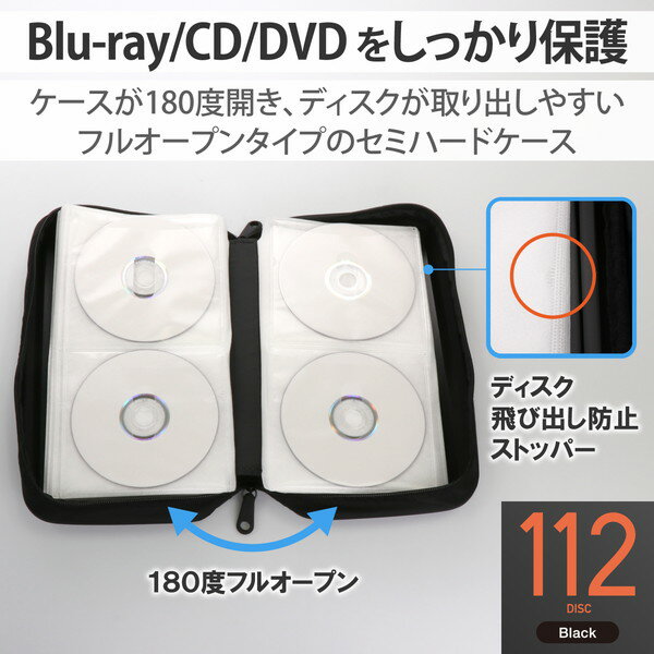 【正規代理店】 エレコム CCD-HB112BK ディスクファイル 112枚収納 セミハード CD DVD BD Blu-ray ブルーレイ CDケース DVDケース BDケース Blu-rayケース ブルーレイケース ブラック ケース 送料無料