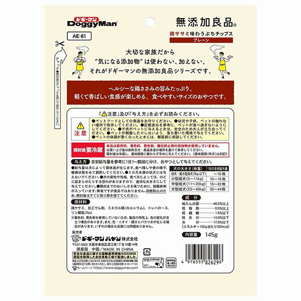 【12個セット】 ドギーマン 無添加良品 鶏ササミ味わうぷちチップス プレーン 145g おやつ 全犬種 生後2ヶ月以上 ドギーマンハヤシ 犬用おやつ 酸化防止剤 ドッグフード ペット用品 スナック 発色剤 全ステージ 着色料 鶏ササミ ドッグ フード ペット 安心素材