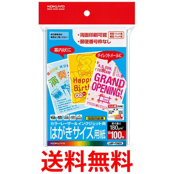コクヨ LBP-F3635 カラーレーザー&インクジェット用はがき用紙 (はがきサイズ・100枚)