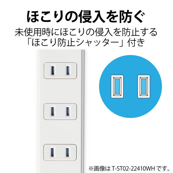 【5個セット】 エレコム T-ST02-22630WH 電源タップ 3m コンセント 延長コード タップ コンセントタップ ほこりシャッター 6個口 ELECOM 配線 ホワイト 整理 ほこり防止 サーバー用電源タップ 安全 サーバー ほこり防止シャッター スイングプラグ コード 送料無料
