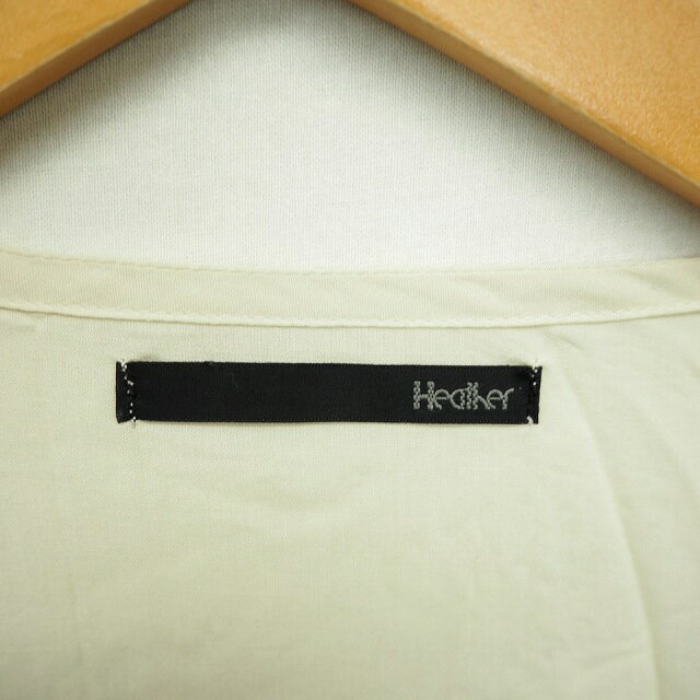 【中古】ヘザー Heather ワンピース ひざ丈 薄手 前開き ビーズ装飾 半袖 F 薄茶 ベージュ /TT48 レディース 【ベクトル 古着】 210624