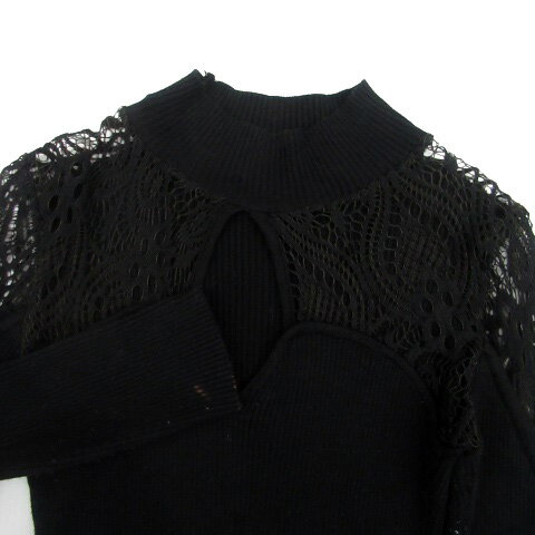 【中古】ザファーストウィメン THE FIRST women リブニット カットソー ハイネック 長袖 レース 切替 カットアウト 黒 ブラック /HO12 レディース 【ベクトル 古着】 230731