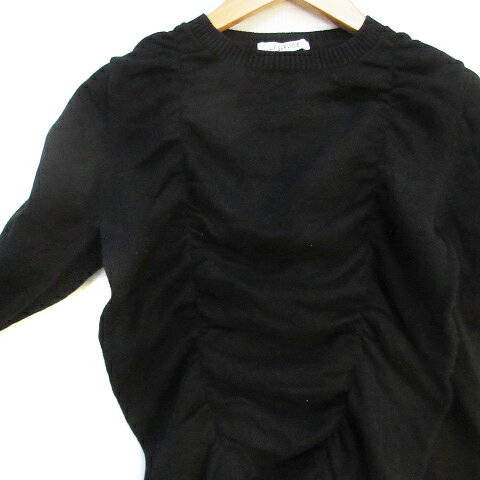 【中古】リップサービス LIP SERVICE ニット カットソー 長袖 クルーネック シャーリング 無地 F 黒 ブラック /FF37 レディース 【ベクトル 古着】 231129