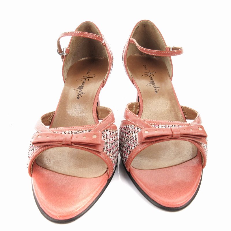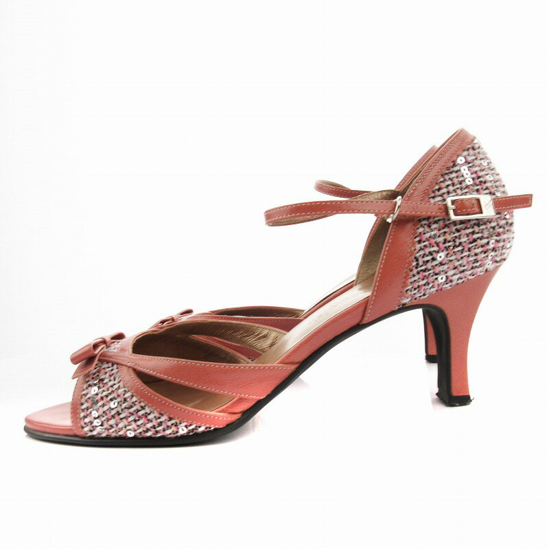 【中古】銀座かねまつ GINZA Kanematsu サンダル パンプス 靴 ストラップ ツイード スパンコール 23.5cm ピンク /MM レディース 【ベクトル 古着】 241009