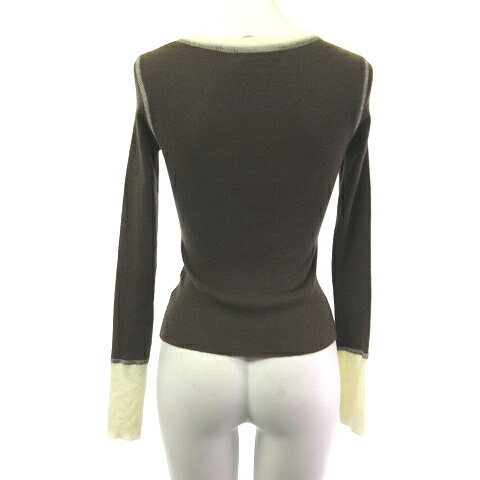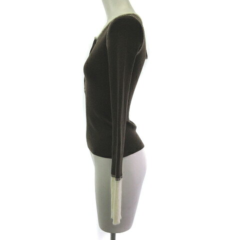 【中古】エルマール El mar ニットソー カットソー 長袖 ヘンリーネック ブラウン ホワイト レディース 【ベクトル 古着】 250527