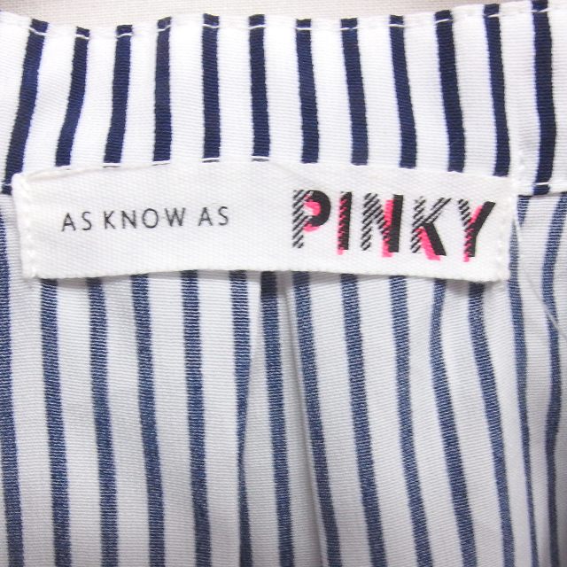 【中古】アズノウアズ ピンキー AS KNOW AS PINKY カットソー ブラウス 花柄刺? ストライプ キーネック 七分袖 * ホワイト ネイビー 白 紺 /TT12 レディース 【ベクトル 古着】 250606