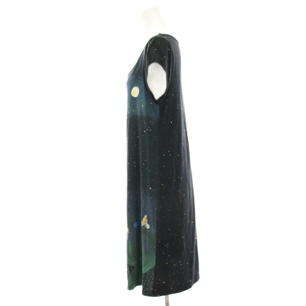 【中古】フランシュリッペ franche lippee 宇宙サーカスワンピース ひざ丈 フレンチスリーブ 総柄 M 黒 ブラック 6311621 /HN レディース 【ベクトル 古着】 250912