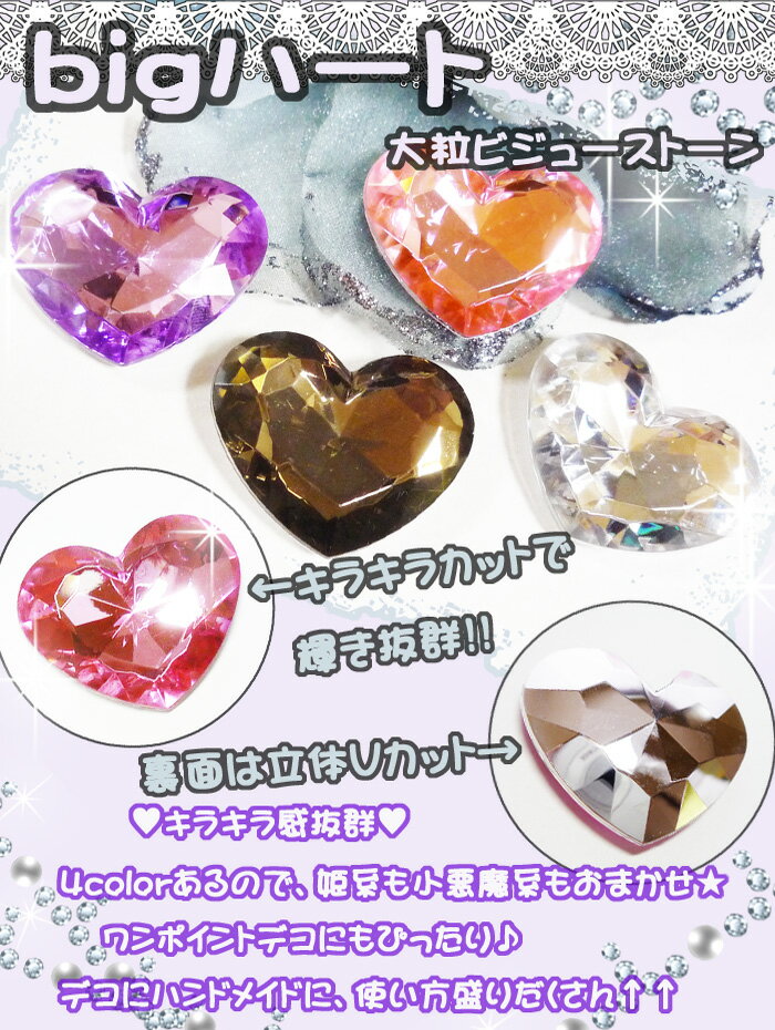 大粒ビジューストーン 立体Vカット bigビジューハート4color 存在感◎ ラインストーン パーツ デコストーン デコパーツ 推し活デコや手芸,ハンドメイドに【メール便可】【RCP】