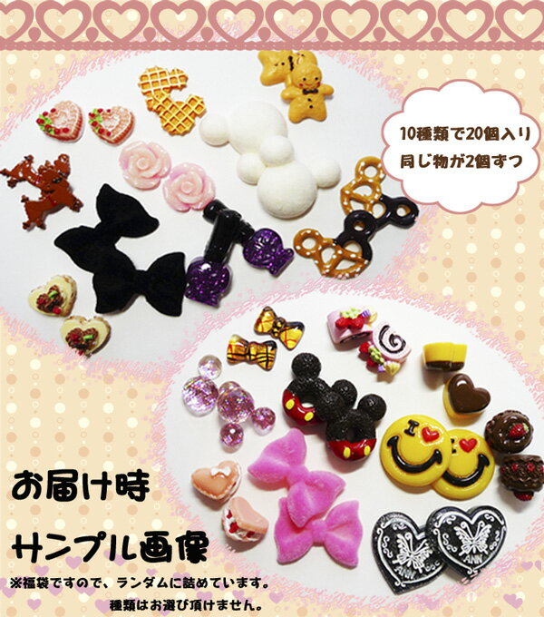 ☆デコパーツ福袋☆ スィーツ&姫系パーツ、ペア福袋20個入り デコ電・ハンドメイド♪【メール便可】【RCP】