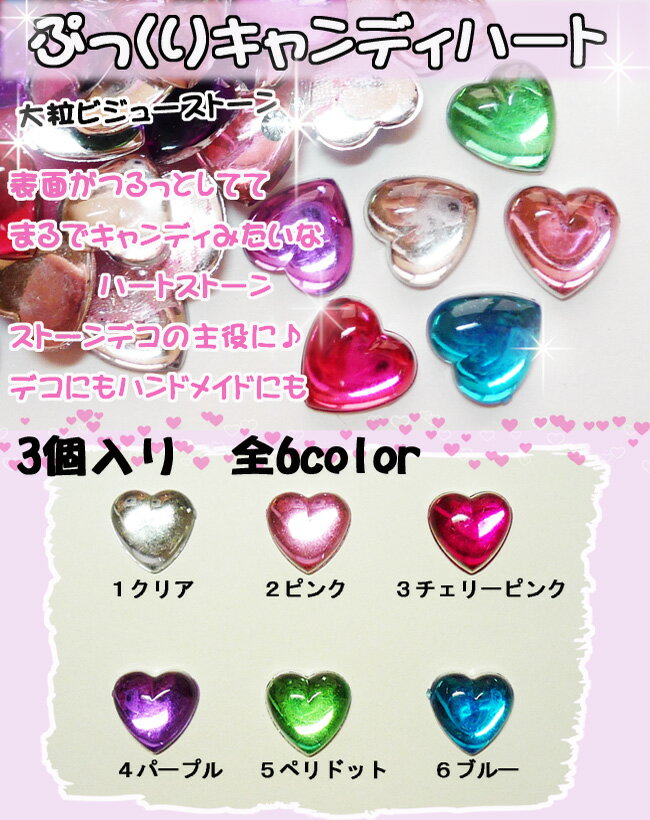 商品の詳細 サイズ ・13×13mm 入り数 ・3個入り カラー ・全6color (1)クリア (2)ピンク (3)チェリーピンク (4)パープル (5)ペリドット (6)ブルー 使用用途 ・デコ用品、ハンドメイド用品 発送方法 ・ゆうメール便 ・宅配便 ☆ここがオススメ☆ ・とってもカワイイ大粒ビジューストーンのぷっくりハート。 ・表面がつるっとしてて、キャンディみたいなストーンです。 ・デコの主役にぴったり♪ ・アイデア次第でアクセ作りやハンドメイドにも♪大粒ビジューストーン ぷっくりキャンディハート 6color、3個入り【メール便可】