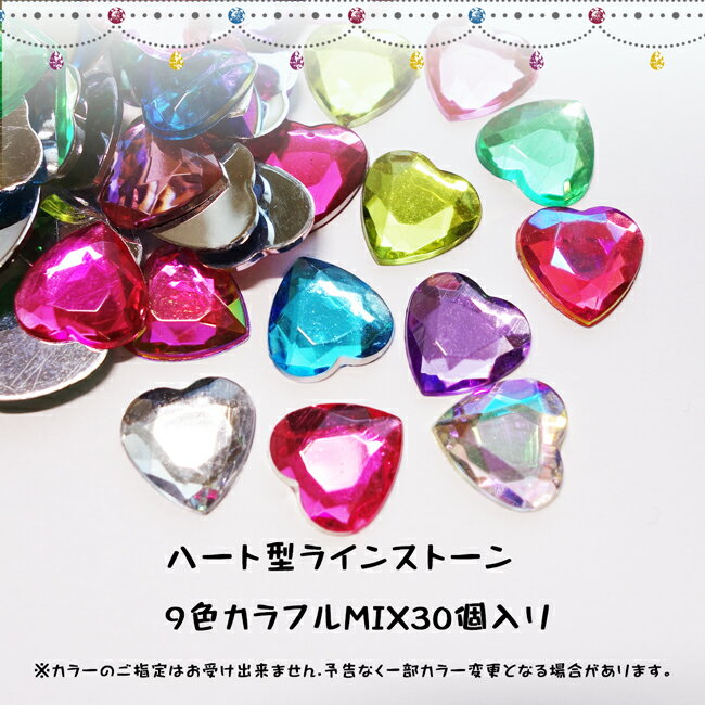 カラフルMIXラインストーン【30個】12×12mm ダイヤカット ハート型ラインストーン 9色MIX、30個 高品質アクリル製ラインストーン アクリルストーン ラインストーン ネイルアート ハンドメイド デコ電【メール便可】