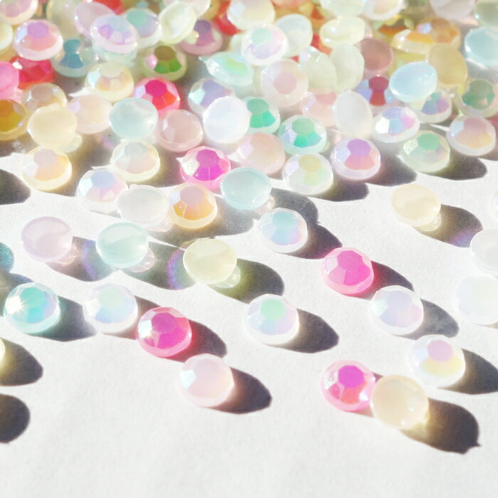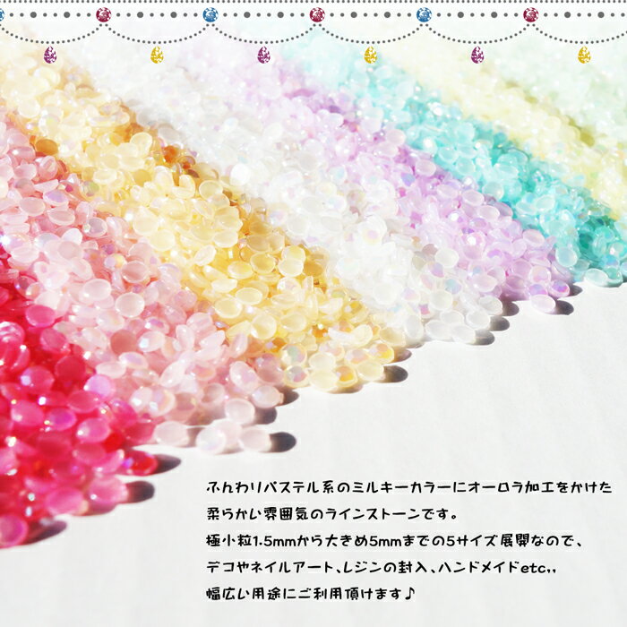 ラインストーン ミルキーストーン(高品質アクリルストーン/ネイルストーン)極小1.5mmから2mm 3mm 4mm 5mmの5サイズ♪大量500粒~100粒 ジェルネイル/ネイルアートやスマホデコ デコうちわ デコストーン 推し活 推し色 アクセサリー製作 UVレジンの封入パーツ【メール便可】